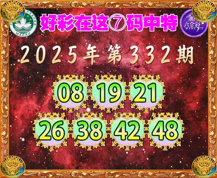 332期:【好彩在这】 ⑦码中特【08.19.21.26.38.42.48】开:26准