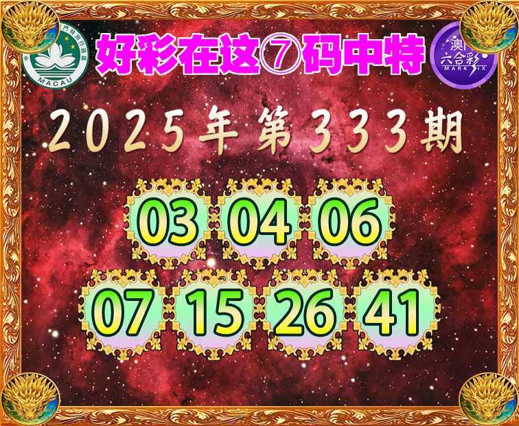 333期:【好彩在这】 ⑦码中特【03.04.06.07.15.26.41】开:06准