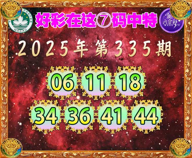 335期:【好彩在这】 ⑦码中特【06.11.18.34.36.41.44】开:44准