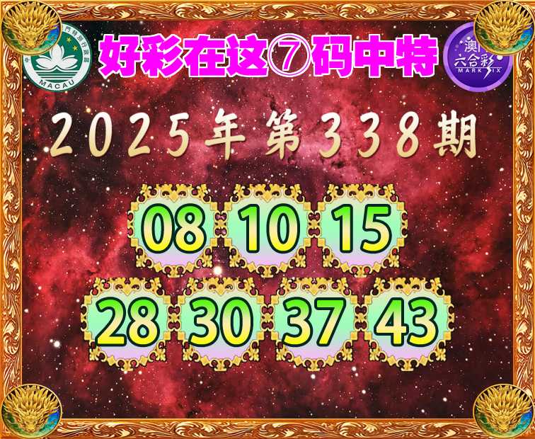 338期:【好彩在这】 ⑦码中特【08.10.15.28.30.37.43】开:08准
