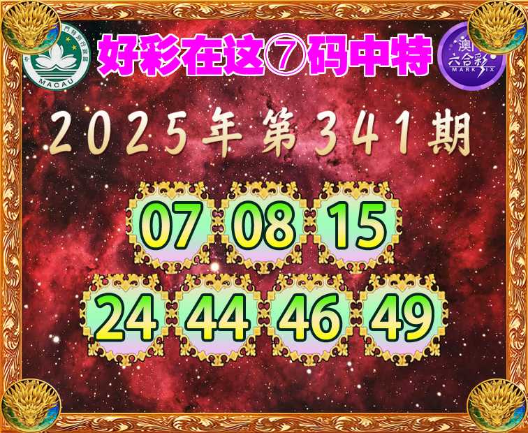 341期:【好彩在这】 ⑦码中特【07.08.15.24.44.46.49】开:06错