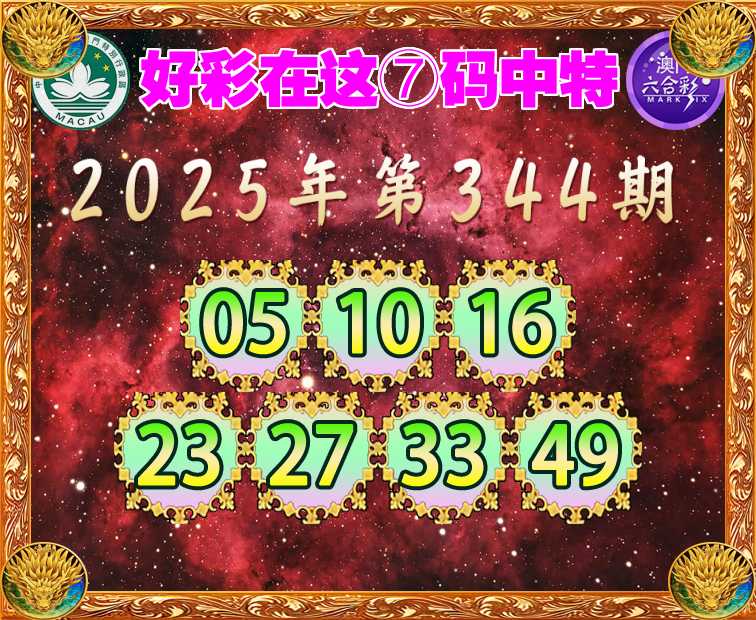 344期:【好彩在这】 ⑦码中特【05.10.16.23.27.33.49】开:27准
