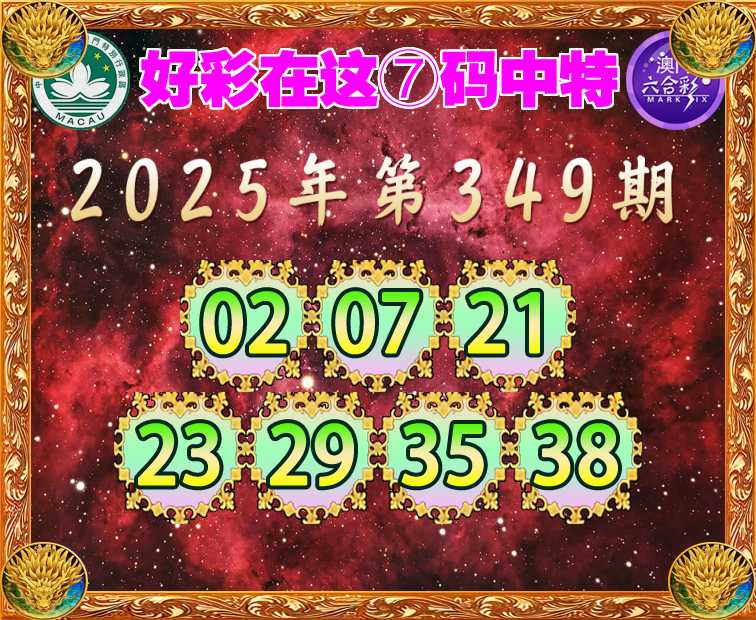 349期:【好彩在这】 ⑦码中特【02.07.21.23.29.35.38】开:22错